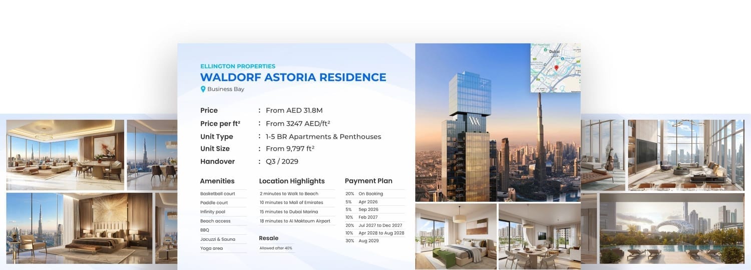 You’ll get a professionally designed launch deck featuring Dubai’s latest off-plan projects, including prices, payment plans, unit info, and more.